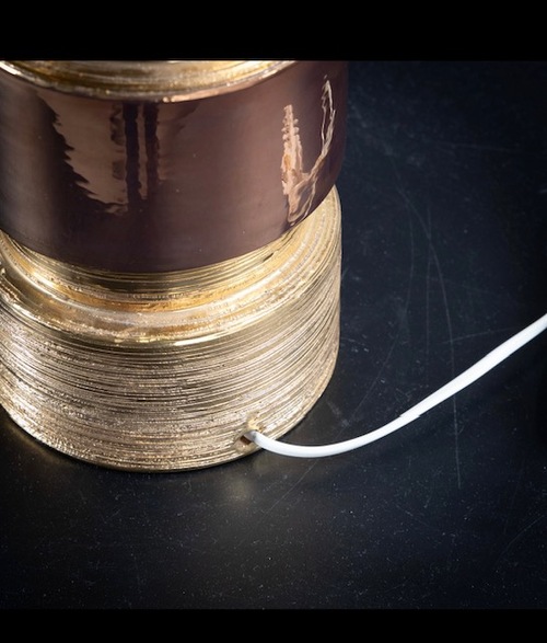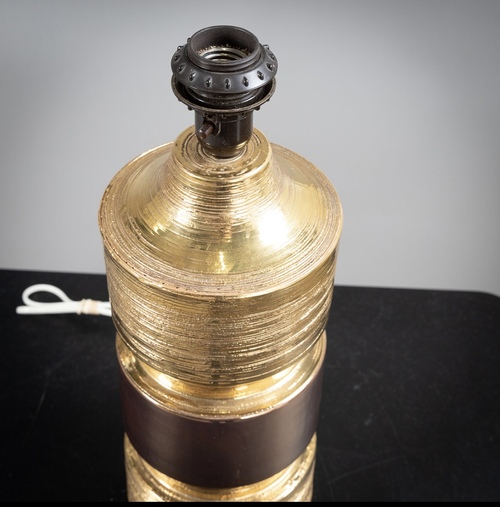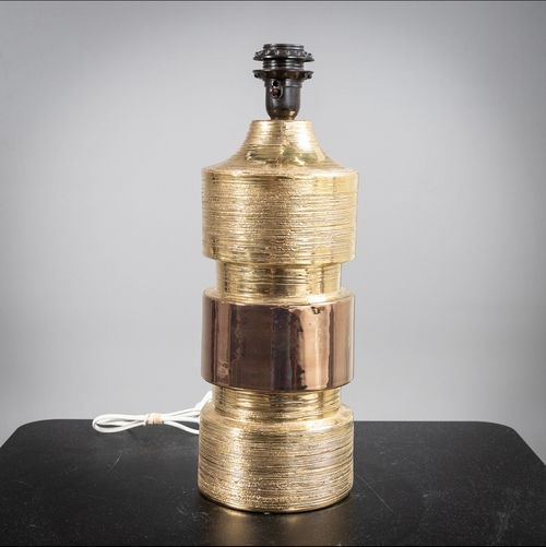 Lámpara de mesa de ceramica dorada diiseño Bitossi para Bergboms. de los años 70.